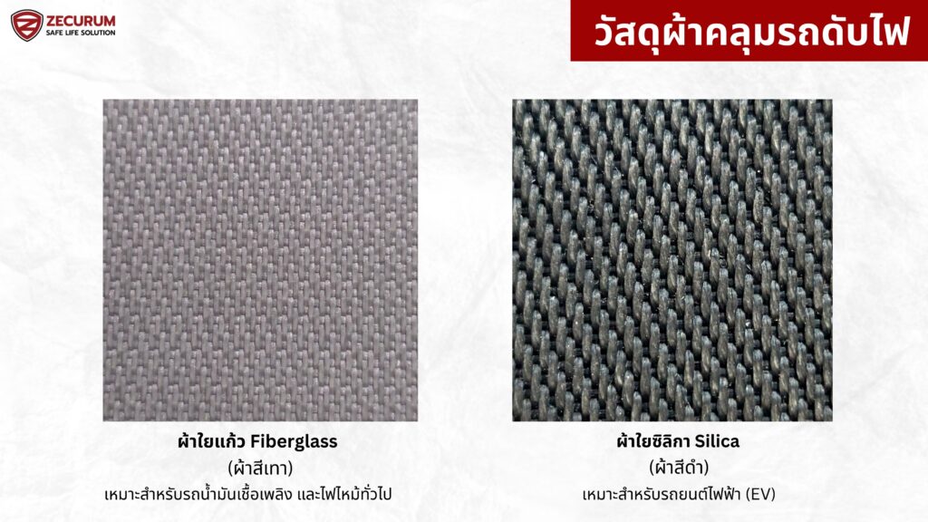 การเลือก วัสดุของผ้าคลุมรถดับไฟ เป็นหัวใจสำคัญที่สุดในการระงับเหตุ เพราะไฟไหม้รถแต่ละประเภทสร้างอุณหภูมิความร้อนที่แตกต่างกัน วัสดุที่ได้มาตรฐานระดับสากลและปลอดภัยนั้น หลักๆ จะผลิตจากเส้นใยทนความร้อนสูงระดับพรีเมียม แบ่งออกเป็น 2 ชนิดหลัก ได้แก่: