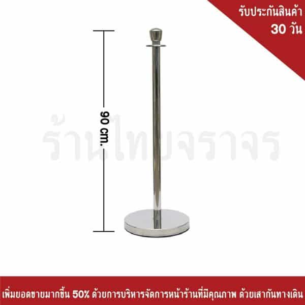 - เสากั้นทางเดินสแตนเลส หัวตัด สีเงิน ชนิดสายคล้อง ความสูง 90 Cm.(ราคาไม่รวมสายคล้อง)