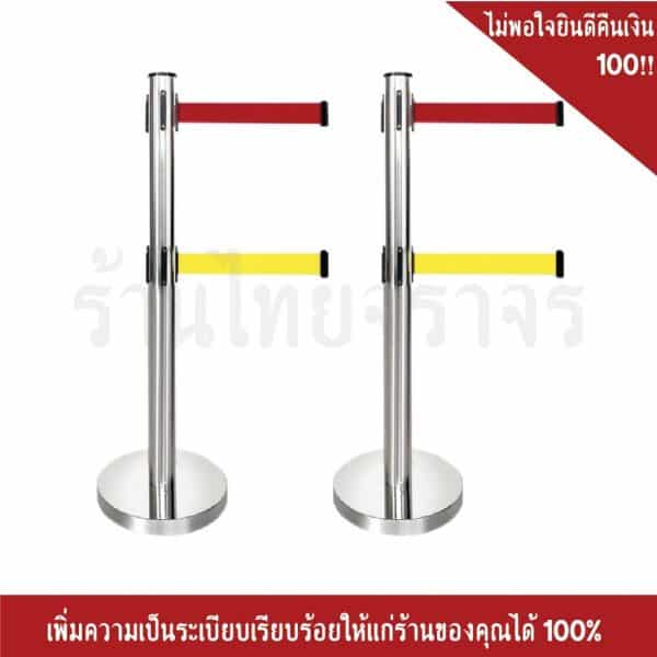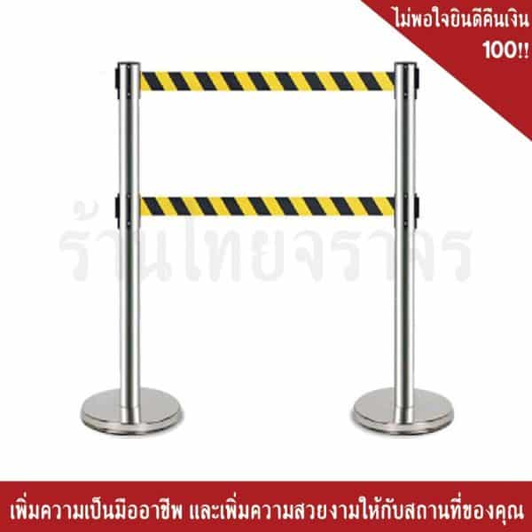 - เสากั้นทางเดินสแตนเลส ชนิดผ้าดึงกลับอัตโนมัติ 2 ทาง ความสูง 90 Cm. (ราคาต่อต้น)