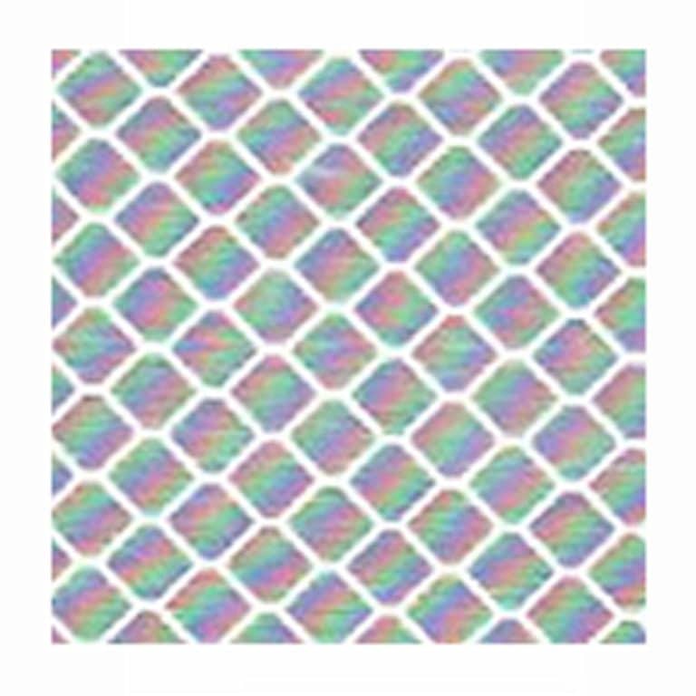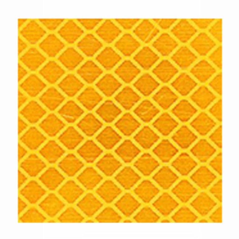 2. แผ่นสะท้อนแสงเป็นแผ่นสะท้อนแสงชนิดมีกาวในตัว (Preasure Sensitive Adhesive) สามารถติดลงบนแผ่นอลูมิเนียมได้ที่อุณหภูมิห้อง ด้านหน้าแผ่นสะท้อนแสง มีผิวเรียบเป็นมัน มีลายเป็นรูปสี่เหลี่ยมข้าวหลามตัด