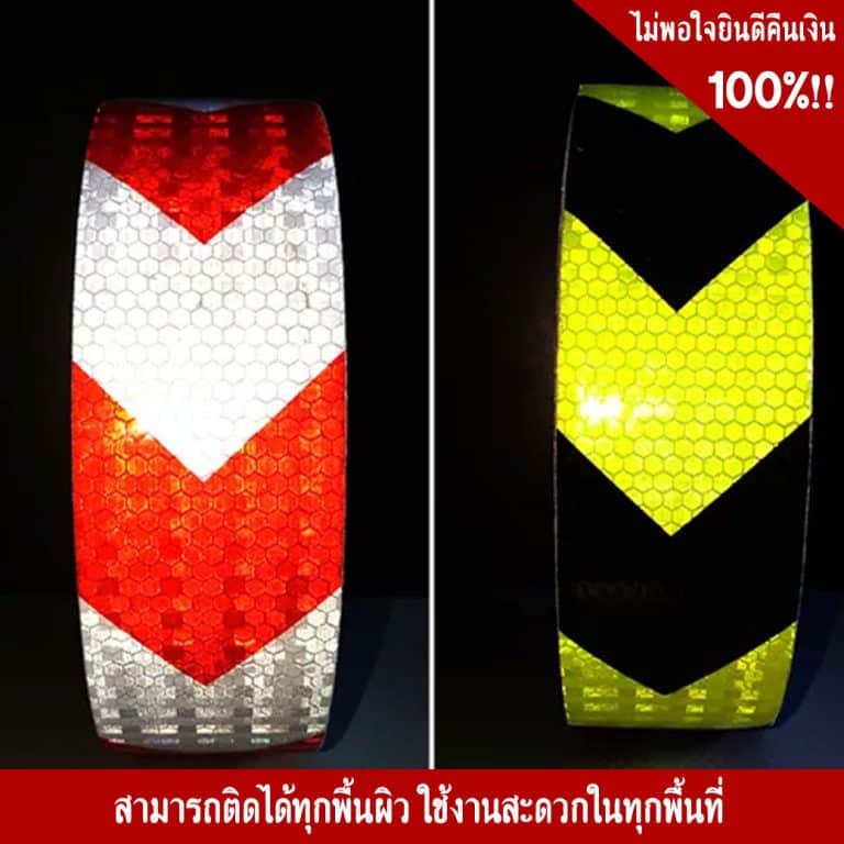 - เทปสะท้อนแสง ชนิดลูกศร ลดอุบัติเหตุการโดนชนท้าย เพิ่มการมองเห็นเด่นชัดในตอนกลางคืน 100%