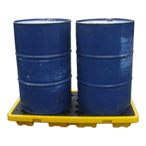 พาเลทรองสารเคมี เเบบ 2 Drums ขนาด 130 x 69 x 15 ซม. วัสดุ LDPE 58L มี drain 1 ช่อง