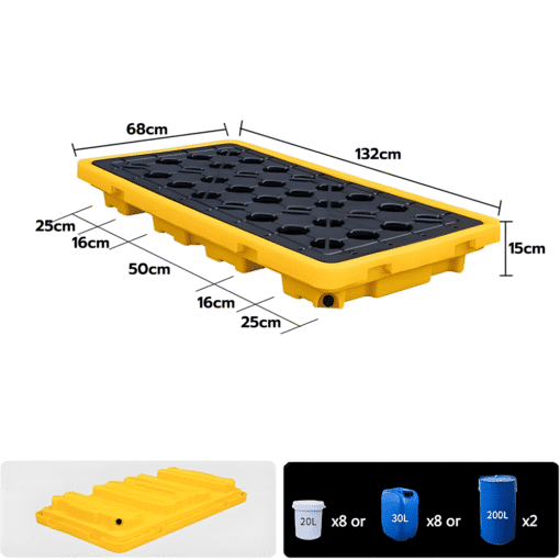- รองรับสารเคมีที่อาจรั่วจากถังหรือภาชนะ เช่น ถังน้ำมัน, IBC (Intermediate Bulk Container)