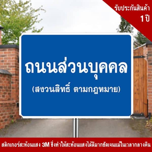 - ป้ายถนนส่วนบุคคล อลูมิเนียม หนา 1.2 mm. 20×30 Cm. 3M Safety Grade (รับประกัน 1 ปี)