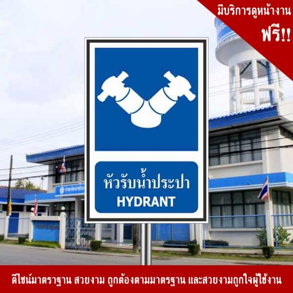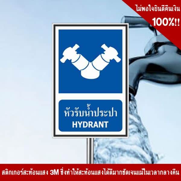 - ป้ายหัวรับน้ำประปา อลูมิเนียม หนา 1.2 mm. 20×30 Cm. 3M Safety Grade (รับประกัน 1 ปี)