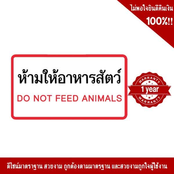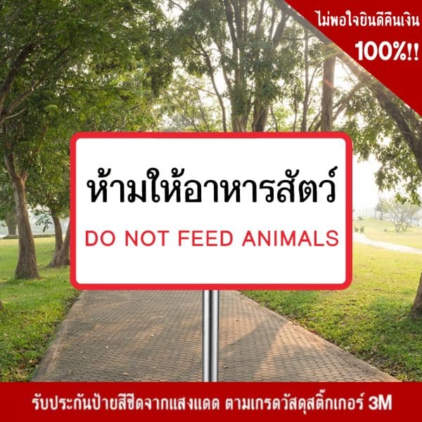 - ป้ายห้ามให้อาหารสัตว์ อลูมิเนียม หนา 1.2 mm. 20×30 Cm. 3M Safety Grade (รับประกัน 1 ปี)