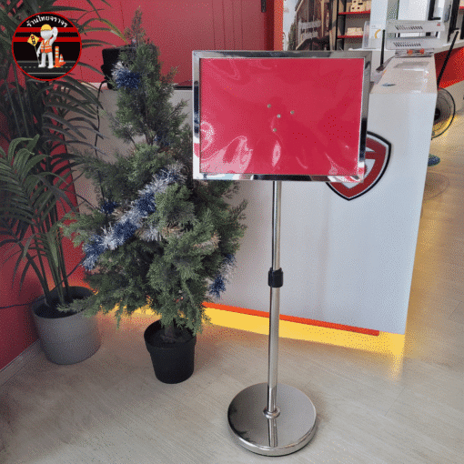 ขาตั้งป้าย โปสเตอร์สเเตนเลส ขนาด A3 หลังเเดง ความสูงปรับได้ 90 -130 cm.