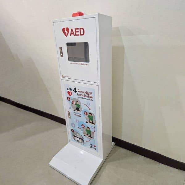 ตู้เก็บเครื่องกระตุกหัวใจพร้อม ALARM แบบตั้งพื้นเหล็กหนา 1 มม. พ่นสี Powder Coating สูง 135 กว้าง 45 ลึก 20 ซม. (ฐานลึก25ซม.)
