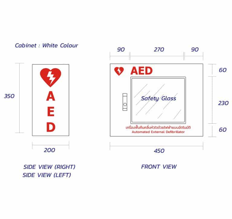 - ตู้เก็บเครื่องกระตุกหัวใจอัตโนมัติ (AED Cabinet) สำหรับติดตั้งภายในอาคาร