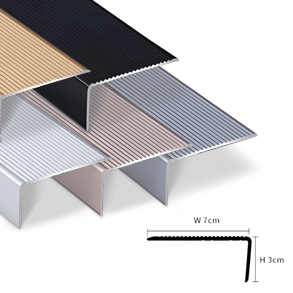แผ่นครอบบันไดกันลื่น วัสดุอลูมิเนียม ขนาด 7 x 3 Cm. ความยาว 90 Cm.