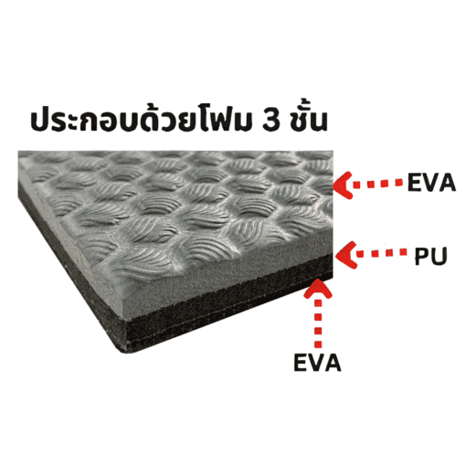- ชั้นล่าง (EVA โฟม): ช่วยเพิ่มความมั่นคงและป้องกันการลื่นไถล