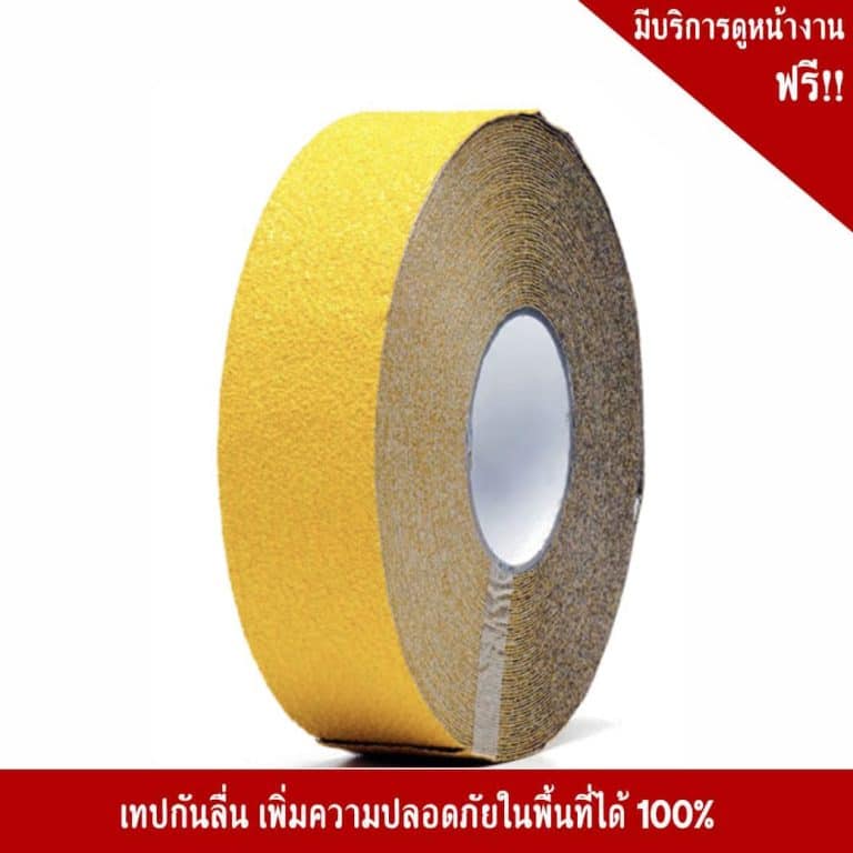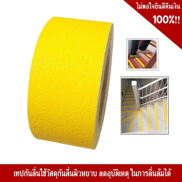 - เทปกันลื่นขนาด 2 นิ้ว ยาว 18 เมตร สำหรับติดพื้นผิวเรียบ สีเหลือง