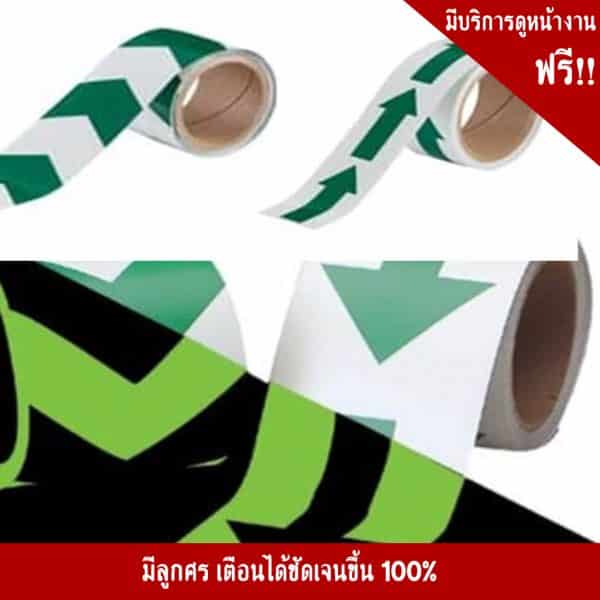 - ลองใช้เทปเรืองลายลูกศร สีขาวเขียว แล้วคุณจะได้ ช่วยบ่งบอกถึงเขตพื้นที่ห้ามเข้าได้ชัดเจน 100%