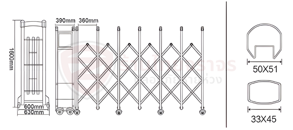 - โครงสร้างไขว้ (Cross Material) : 45×33 มม. หนา 0.6 มม. เสริมความมั่นคง