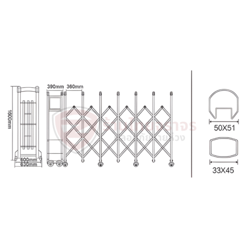 - ขนาด (Dimensions) : สูง 1,600 มม. กว้าง 640 มม. ความยาวปรับได้ 1–20 เมตร