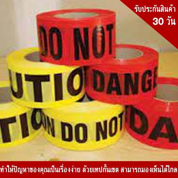 - เทปกั้นเขตพื้นที่ห้ามเข้า กั้นเขตพื้นที่อันตรายหรือกั้นเขตพื้นที่หวงห้ามหรือแบ่งเขตแดนต่างๆ ตามที่ต้องการ ซึ่งทำให้คุณไม่ต้องเสียเวลามาไล่คนเข้า-ออกพื้นที่ห้ามเข้า