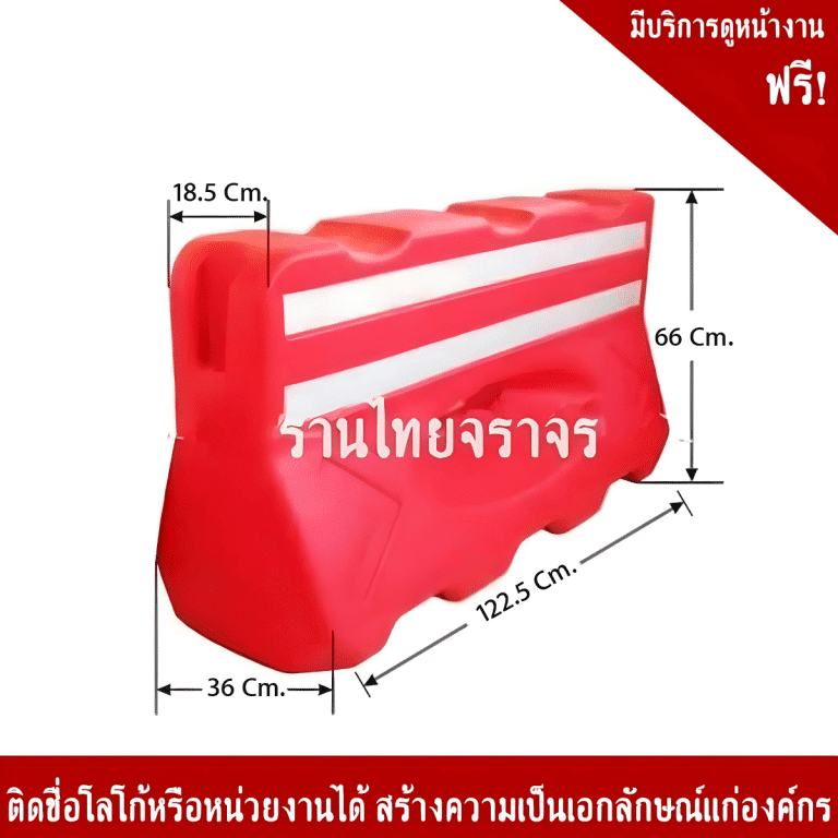 - แผงกั้นจราจรบรรจุน้ำได้ (แบริเออร์) สีแดง ขนาด 36×122.5×66 Cm.