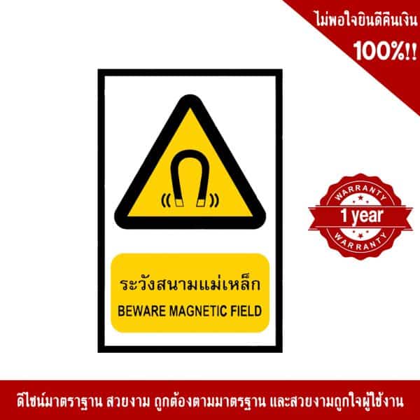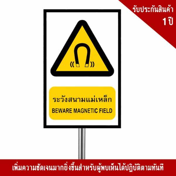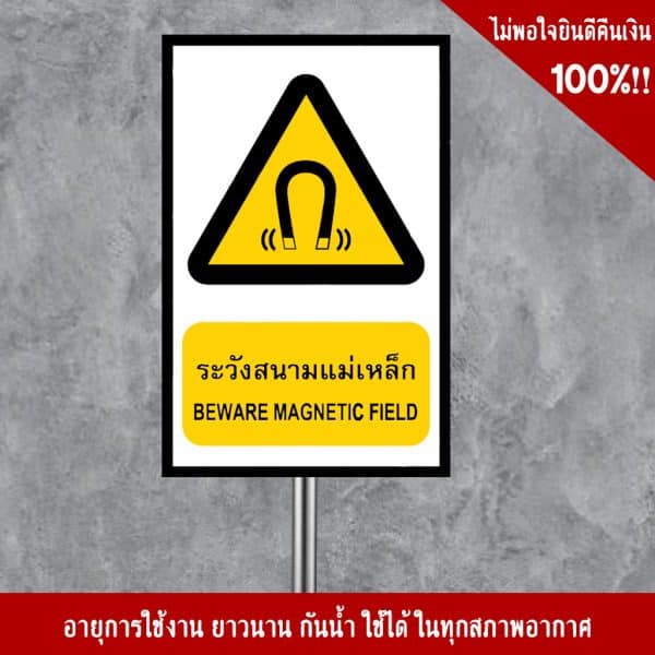 - ป้ายระวังสนามแม่เหล็ก อลูมิเนียม หนา 1.2 mm. 20×30 Cm. 3M Safety Grade (รับประกัน 1 ปี)