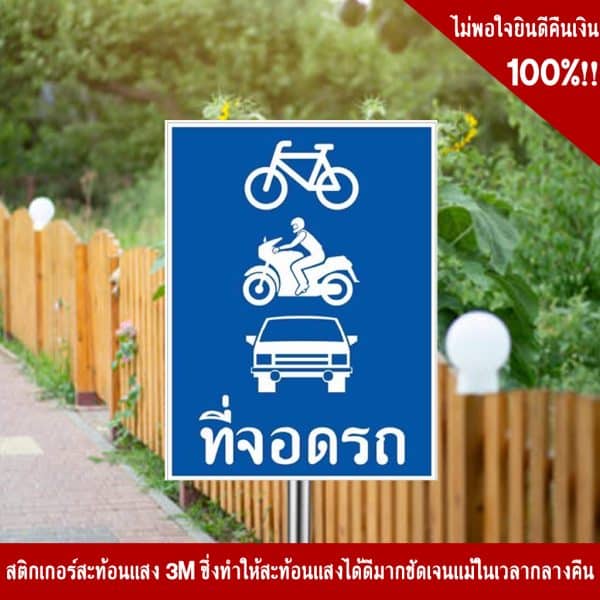 ป้ายที่จอดรถจักรยาน จักรยานยนต์ และรถยนต์ สะท้อนแสง 3M เพิ่มสัญลักษณ์ที่โดดเด่น และ แจ้งเตือนได้อย่างชัดเจน