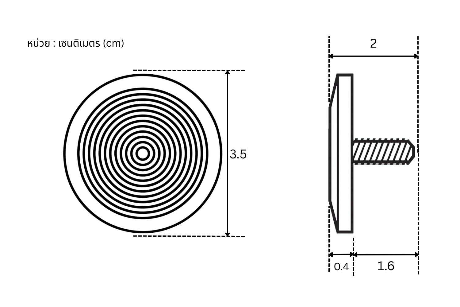 ปุ่มทางเดินคนพิการสแตนเลสแนวจุด ขนาด 3.5 Cm. ลายวงกลม