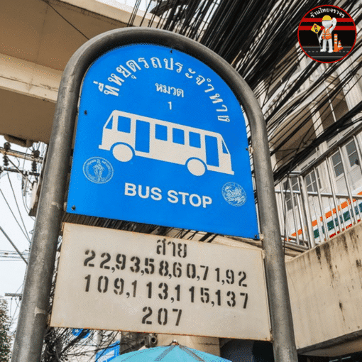 - ข้อความบนป้าย : ป้ายที่หยุดรถประจำทาง