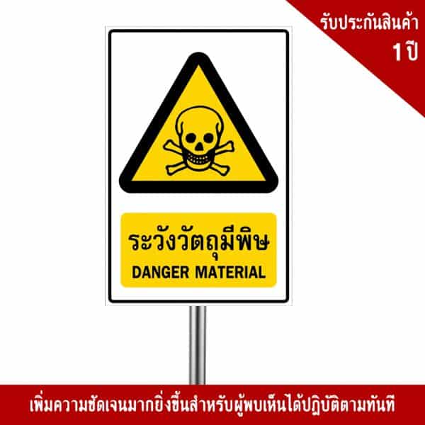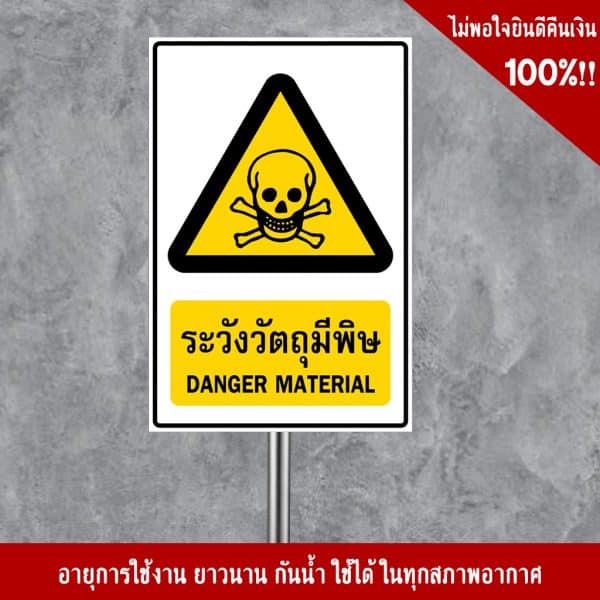 - ป้ายระวังวัตถุมีพิษ อลูมิเนียม หนา 1.2 mm. 20×30 Cm. 3M Safety Grade (รับประกัน 1 ปี)
