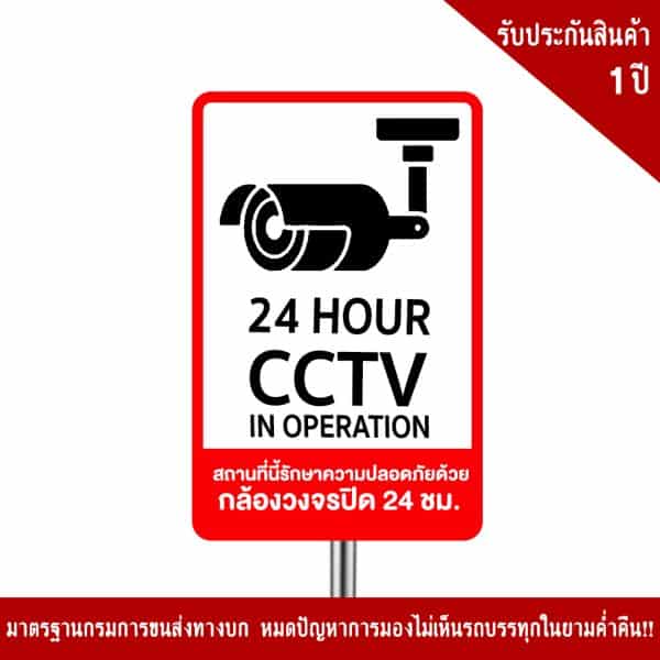 - ป้ายกล้องวงจรปิด CCTV 24 Hour สีแดง-ดำ อลูมิเนียม หนา 1.2 mm. 20×30 cm. 3M Safety Grade (รับประกัน 1 ปี)