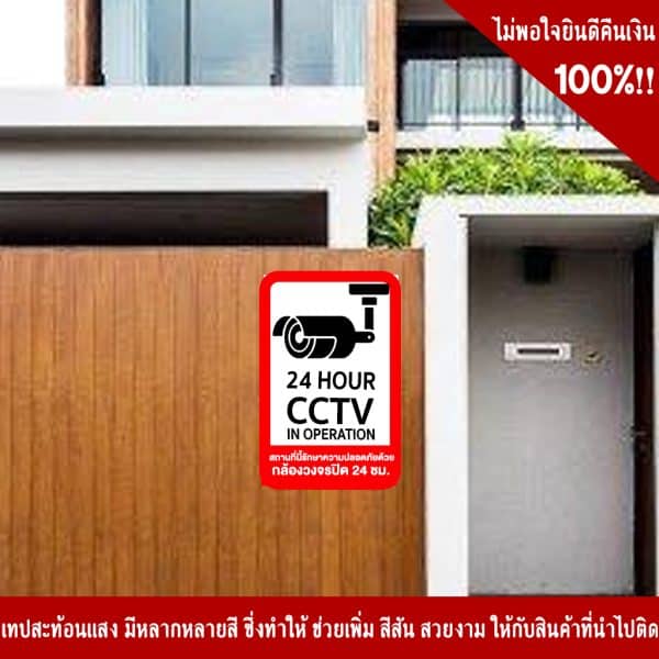 ป้ายกล้องวงจรปิด CCTV 24 Hour สีแดง-ดำ สะท้อนแสง 3M