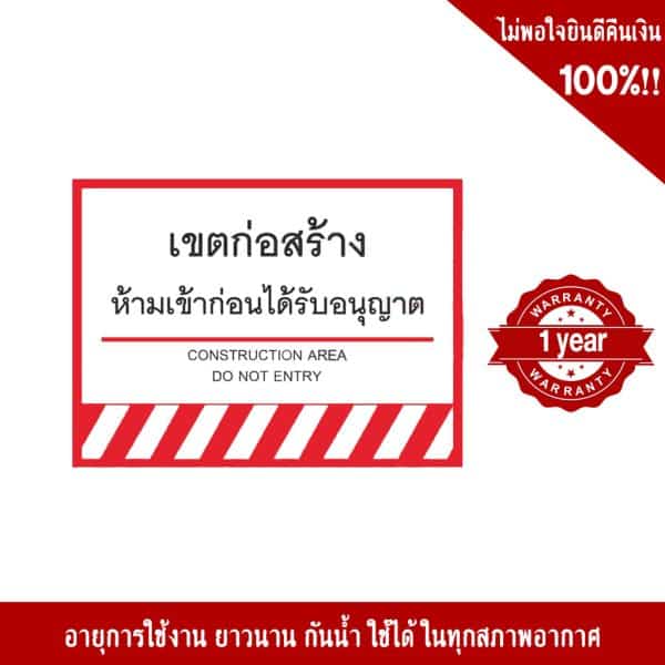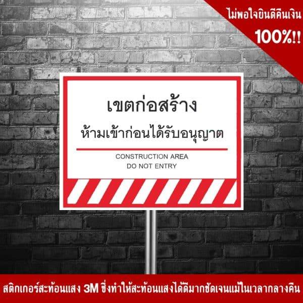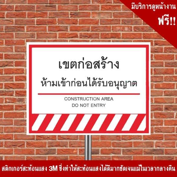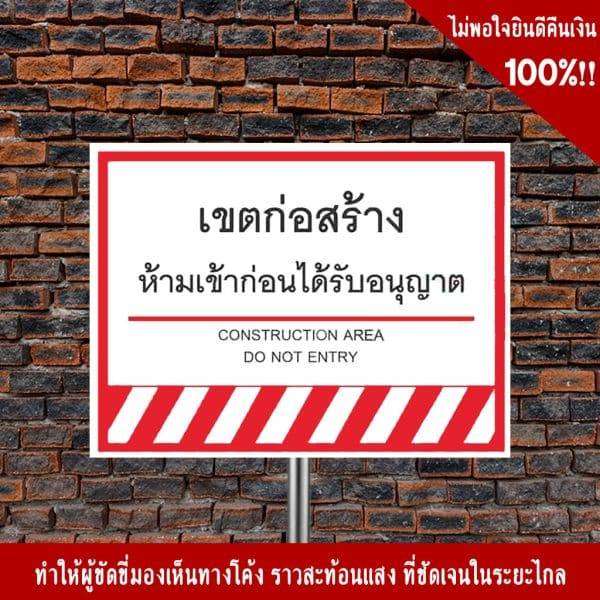 ป้ายเขตก่อสร้าง ห้ามเข้าก่อนได้รับอนุญาต สะท้อนแสง 3M