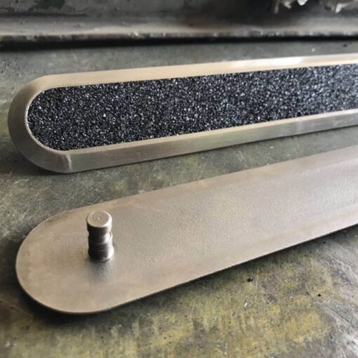 ปุ่มทางเดินคนพิการสแตนเลสแนวทาง ขนาด 3.5×28 Cm. ลายกากเพชร