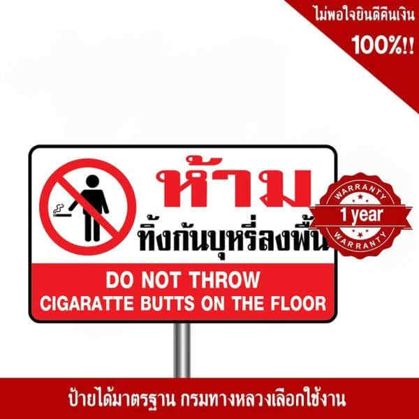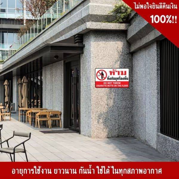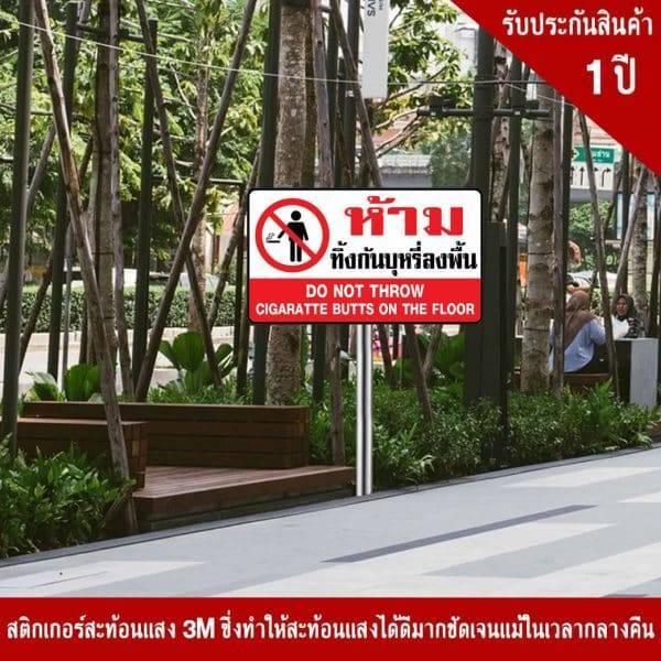 ป้ายห้ามทิ้งก้นบุหรี่ลงพื้น สะท้อนแสง 3M