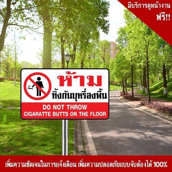 ป้ายห้ามทิ้งก้นบุหรี่ลงพื้น อลูมิเนียม หนา 1.2 mm. 20×30 Cm. 3M Safety Grade (รับประกัน 1 ปี)