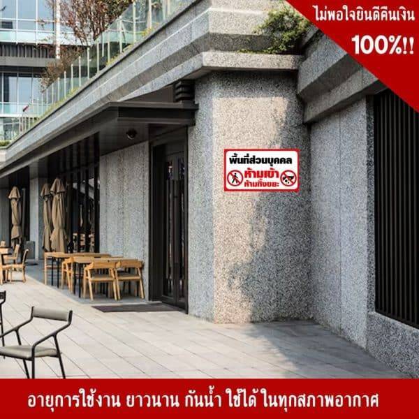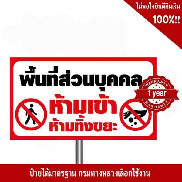 ป้ายพื้นที่ส่วนบุคคล ห้ามเข้า ห้ามทิ้งขยะ สะท้อนแสง 3M
