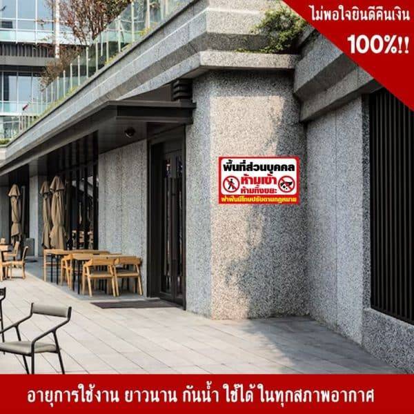 ป้ายพื้นที่ส่วนบุคคลห้ามเข้าห้ามทิ้งขยะ ฝ่าฝืนมีโทษปรับตามกฎหมาย สะท้อนแสง 3M