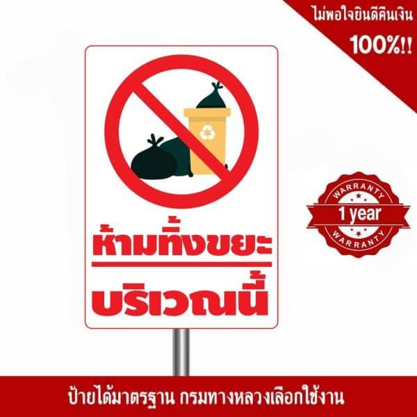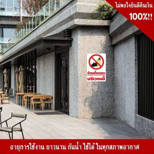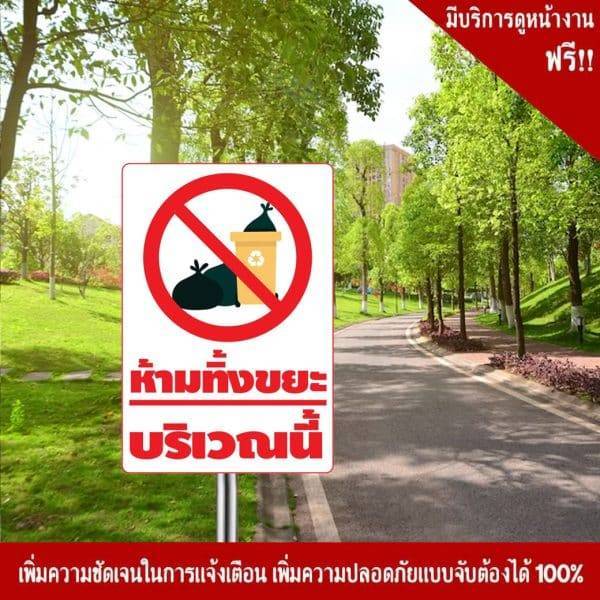 ป้ายห้ามทิ้งขยะบริเวณนี้ อลูมิเนียม หนา 1.2 mm. 20×30 Cm. 3M Safety Grade (รับประกัน 1 ปี)