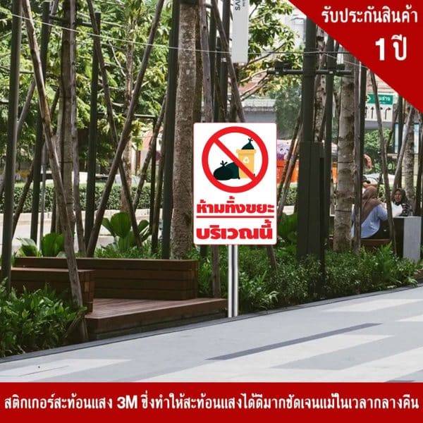ป้ายห้ามทิ้งขยะบริเวณนี้ สะท้อนแสง 3M