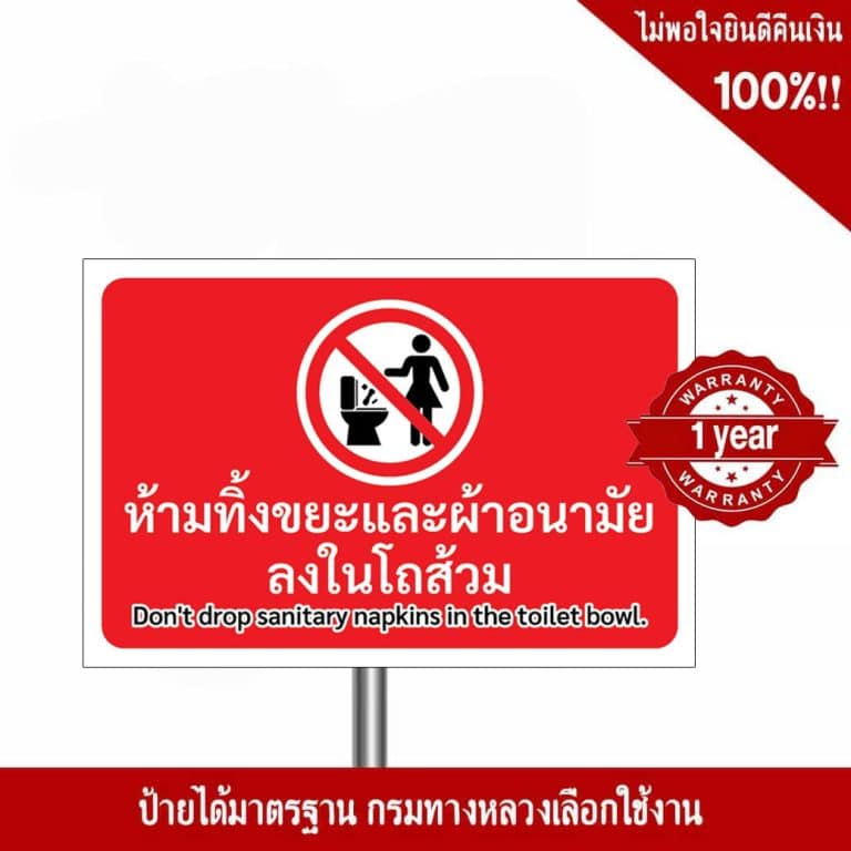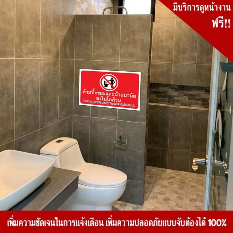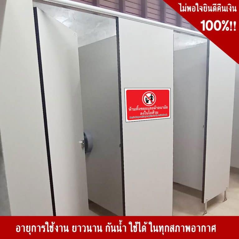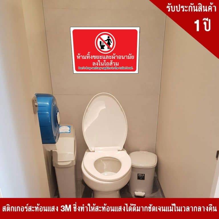 ป้ายห้ามทิ้งขยะ และผ้าอนามัยลงในโถส้วม สะท้อนแสง 3M