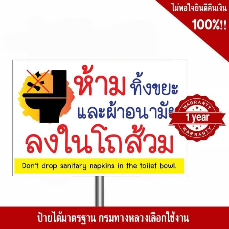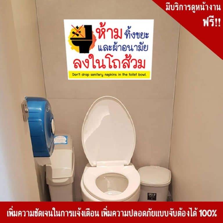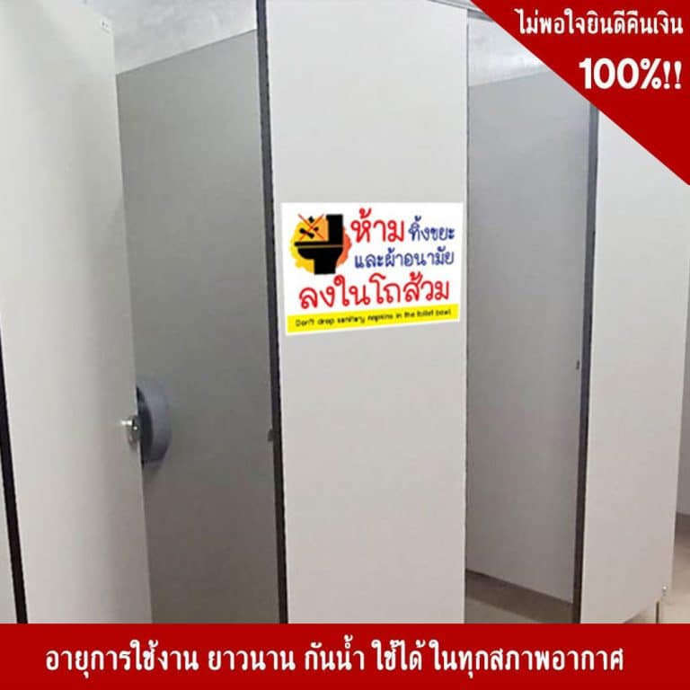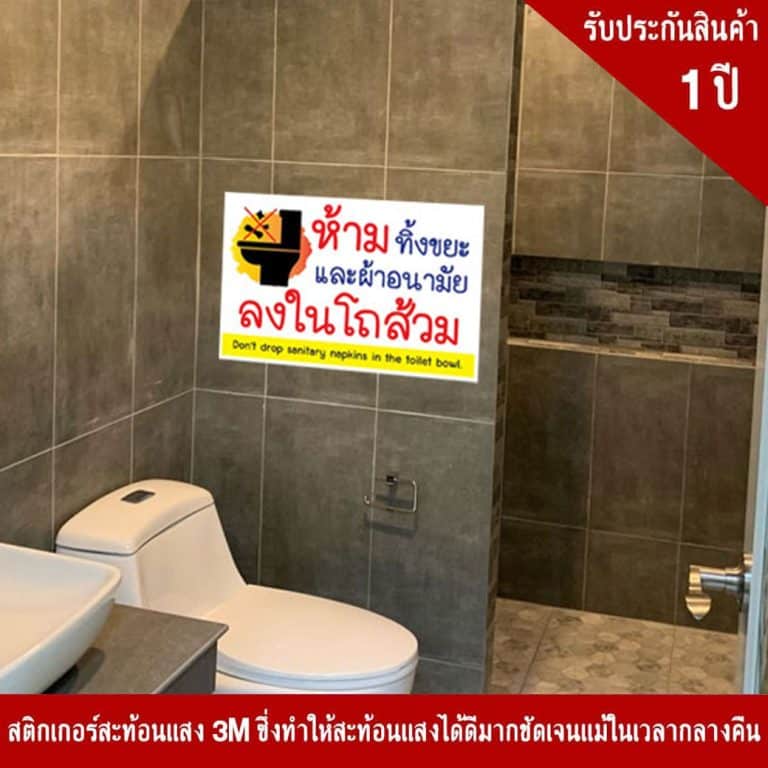 ป้ายห้ามทิ้งขยะ และผ้าอนามัยลงในโถส้วม สะท้อนแสง 3M