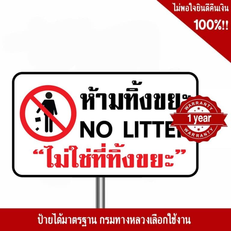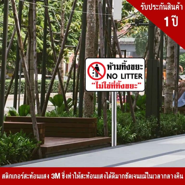ป้ายห้ามทิ้งขยะ NO LITTER ไม่ใช่ที่ทิ้งขยะ สะท้อนแสง 3M