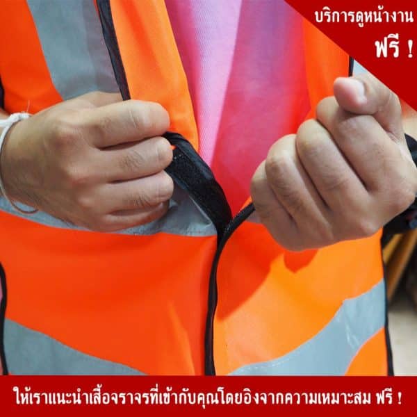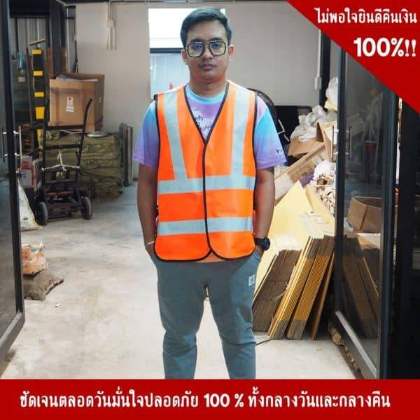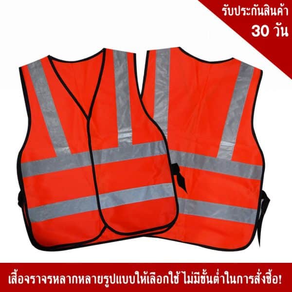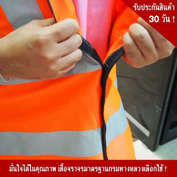- เสื้อสะท้อนแสงแบบตีนตุ๊กแก สีส้ม พร้อมคาดแถบสะท้อนแสง