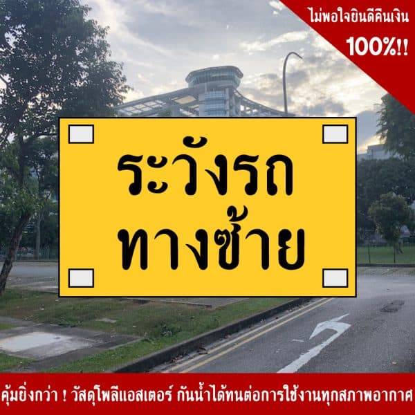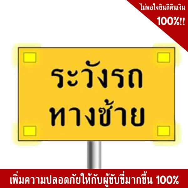 - ป้ายเตือนล่วงหน้าด้วยคลื่นเรดาร์และสัญญาณวิทยุ พลังงานแสงอาทิตย์ เตือนระวังรถทางซ้าย