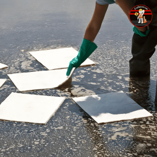 ขั้นตอนที่ 2 : นำแผ่นดูดซับไปวางตรงบริเวณที่มีการรั่วไหลของของเหลว