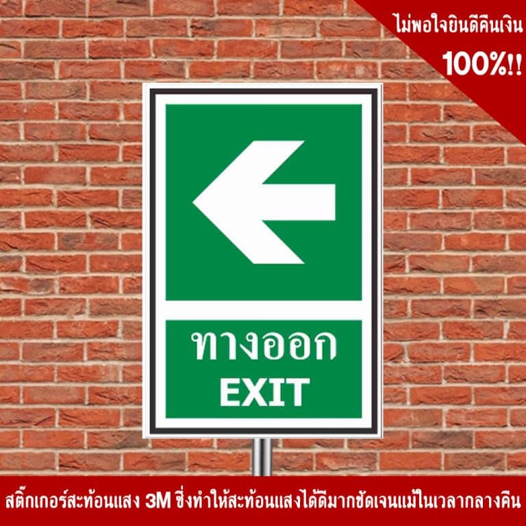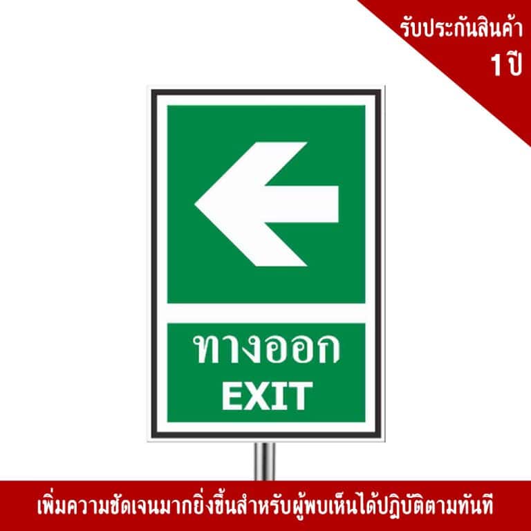- ป้ายทางออก อลูมิเนียม หนา 1.2 mm. 20×30 Cm. 3M Safety Grade (รับประกัน 1 ปี)