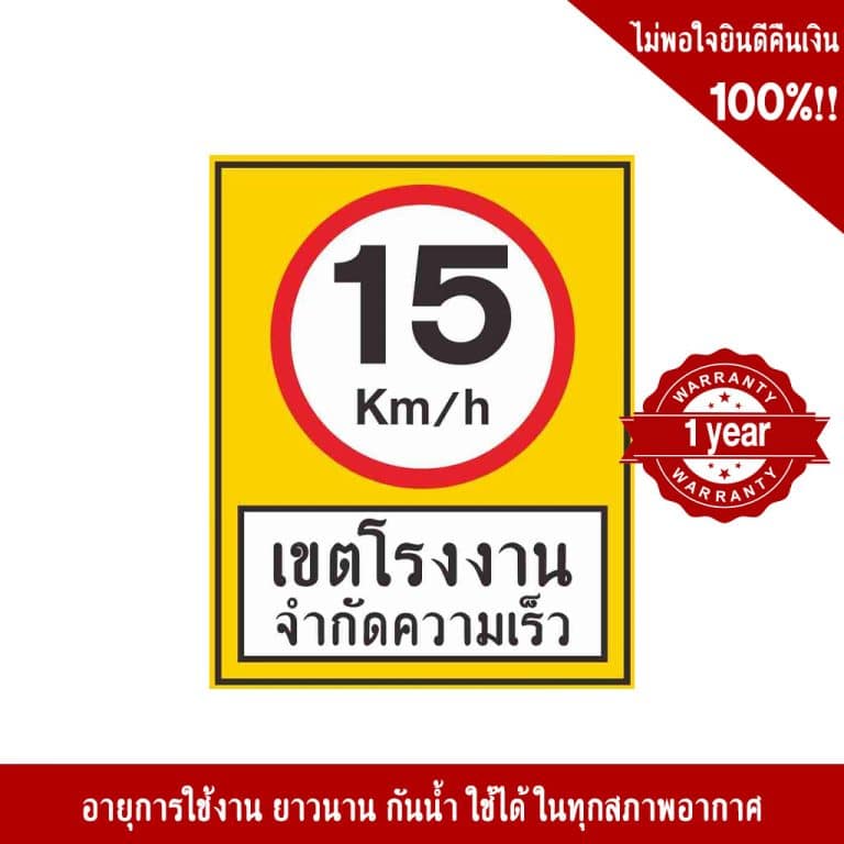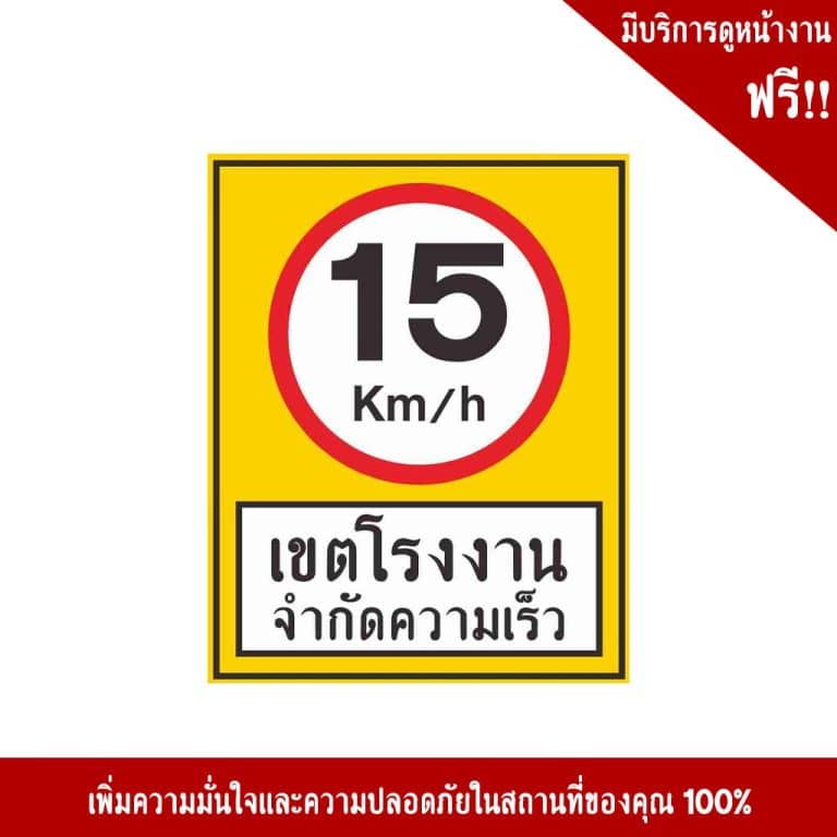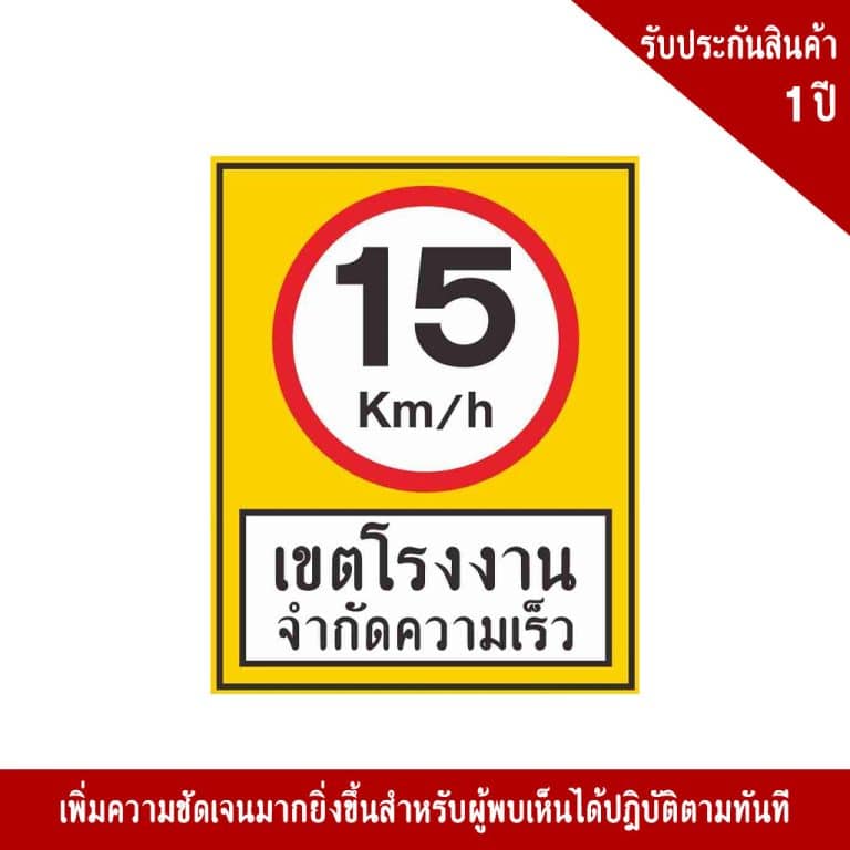 - ป้ายจำกัดความเร็ว 15 กม./ชม.เขตโรงงาน อลูมิเนียม หนา 1.2 mm. 40×50 Cm. 3M Safety Grade (รับประกัน 1 ปี)