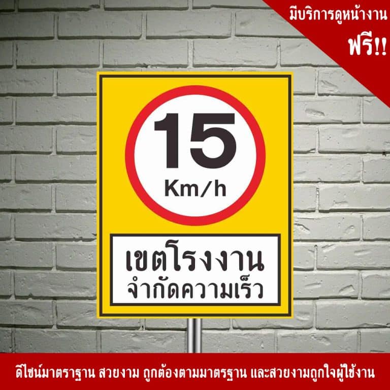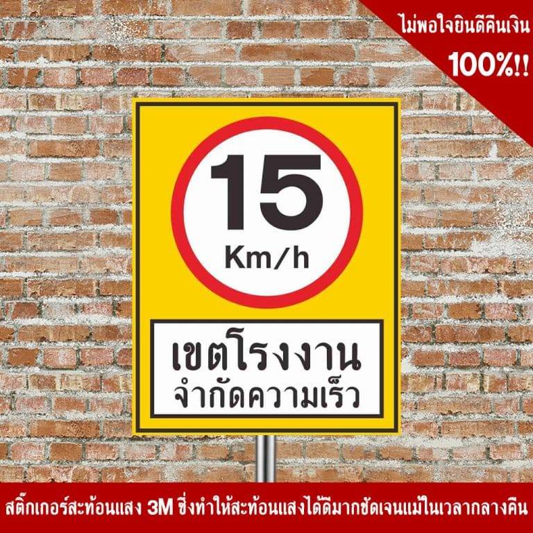 ป้ายจำกัดความเร็ว 15 กม./ชม.เขตโรงงาน สะท้อนแสง 3M