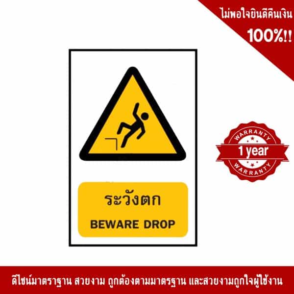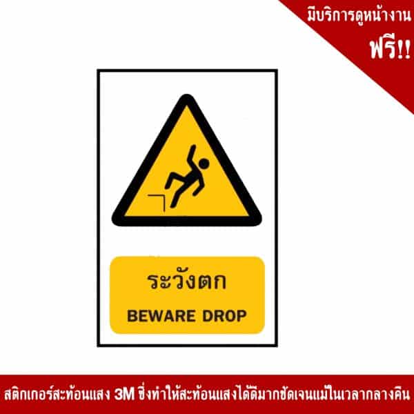 - ป้ายระวังตก อลูมิเนียม หนา 1.2 mm. 20×30 Cm. 3M Safety Grade (รับประกัน 1 ปี)