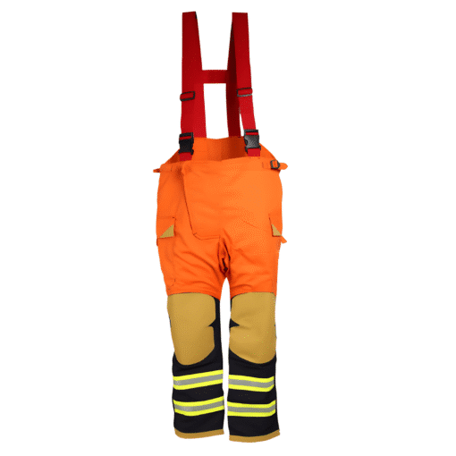 - เสื้อและกางเกงดับเพลิง : ผลิตจากวัสดุที่ทนไฟ เช่น ผ้า Jackal, Nomex,Pararich, Kevlar, หรือผ้าเคลือบสารกันไฟ มักมีแถบสะท้อนแสงเพื่อเพิ่มการมองเห็นในสภาพแสงน้อย