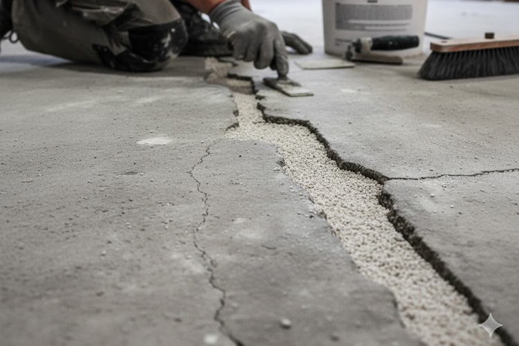 ขั้นตอนที่ 3 : หากพื้นคอนกรีตมีรอยแตก,หลุมกะเทาะ ให้ทำกำรซ่อมแซมด้วย Siscofloor 1200(L) ผสมทราย