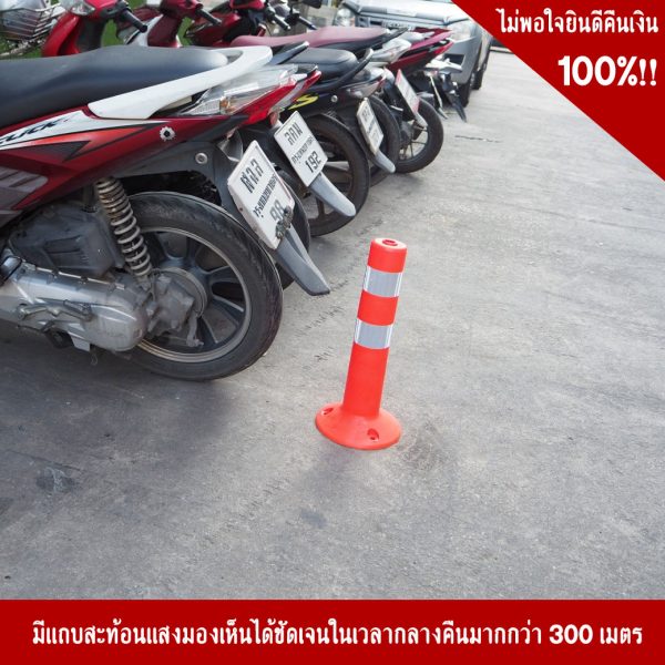 - เสาหลักจราจรล้มลุกได้สีส้ม วัสดุ PU สูง 45 Cm. คาดแถบสะท้อนแสงสีขาว 2 แถบ (ถูกเหยียบได้ประมาณ 100 ครั้ง)