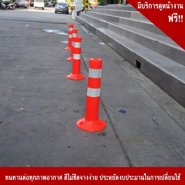 - เสาล้มลุกจราจร ทำจากวัสดุ PU ซึ่งทำให้ ทนต่อการเหยียบทับได้หลายครั้ง